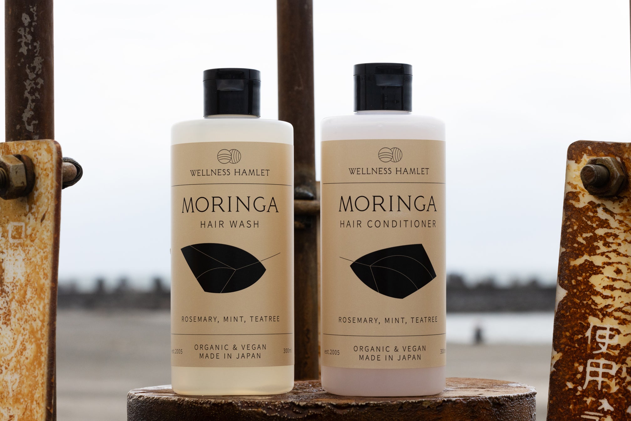 化学合成原料を入れず、天然原料だけで作られたコンディショナーです。原料の精製時にも薬品等を使用していないため、経皮毒の心配もありません。モリンガヘアウォッシュと同じ原料を主体に、サツマイモ由来のクエン酸をベースにした、少し粘度のあるタイプです。洗髪でアルカリ性に傾いた髪を中和して、毛髪が根本から立ち上がり、ふんわり・しっとりした仕上がりになります。
